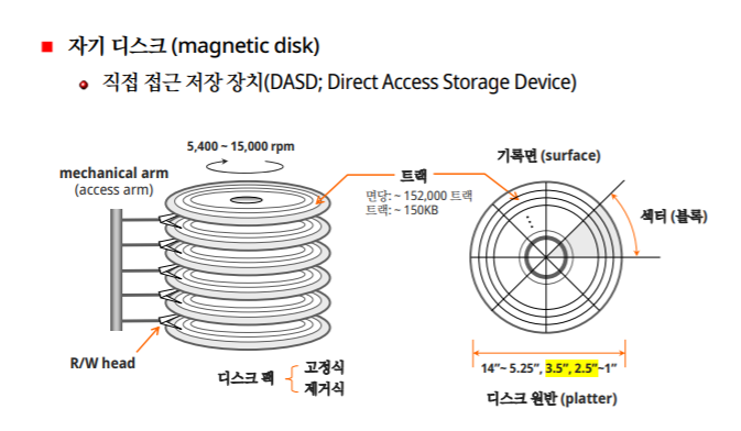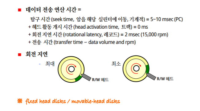 fixed head disk, movable head disk 두가지 존재, 대부분 후자를 이용한다.