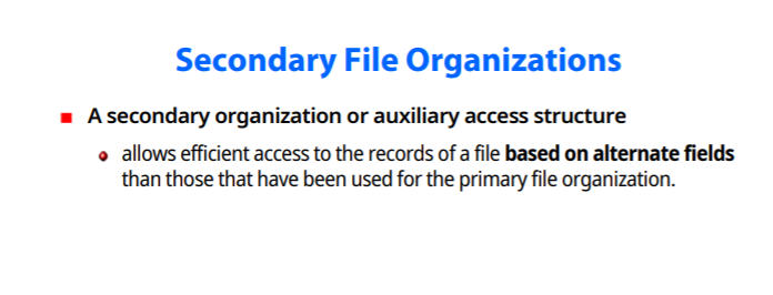 -primary에서 사용되는 field가 아닌 다른 field에 대해 사용되는 것을 이용해 file에 효율적으로 access가능하게 한다