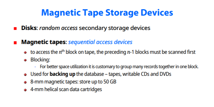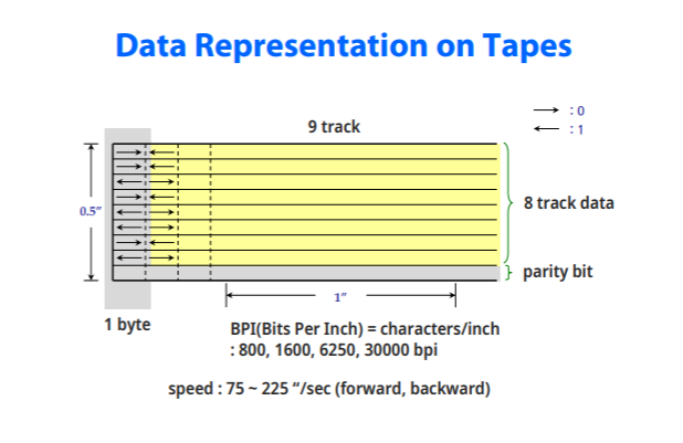 magnetic tapes : disk와 다르게 sequential access 형태를 가진다.