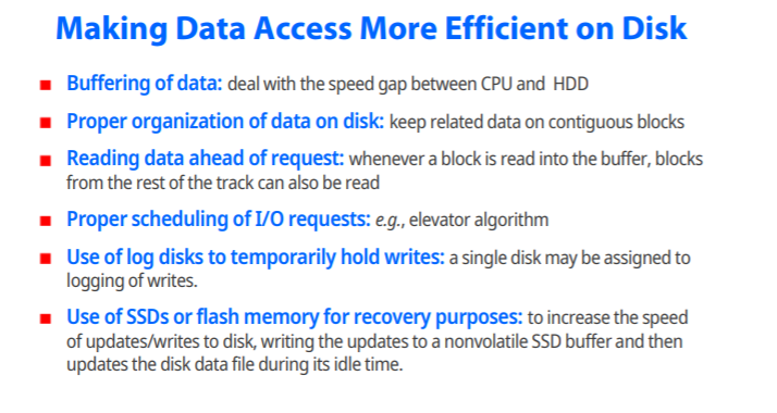 -디스크의 데이터 구조를 적절히 설계함으로써 관련 데이터를 연속된 블럭에 위치하도록 함