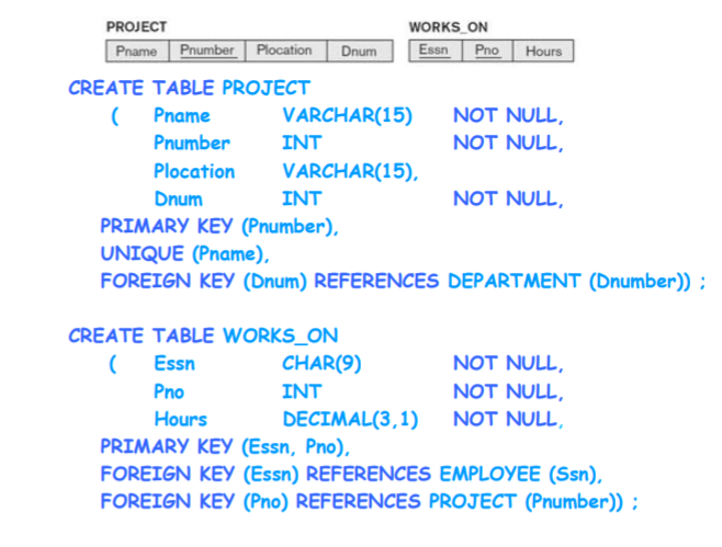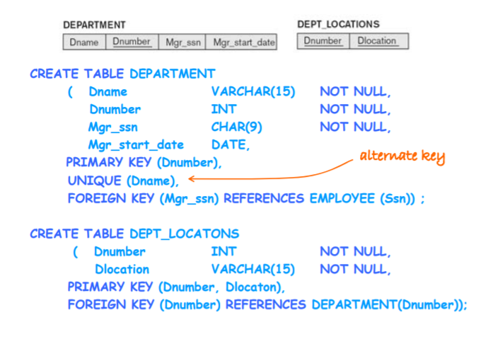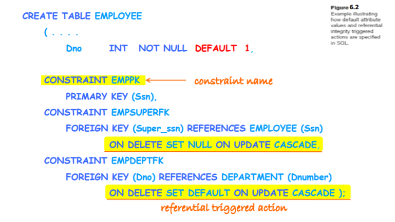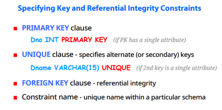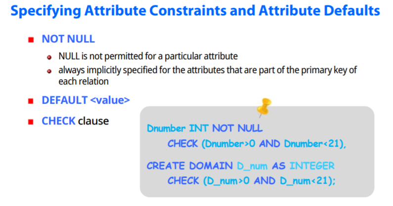 SQL에서 Arrtribute Constraints를 명세하고 Defaults를 지정하는 방법