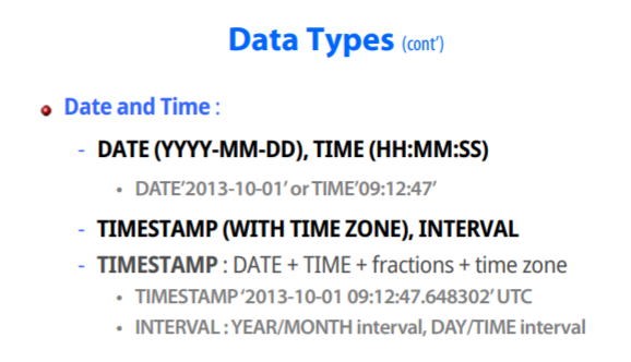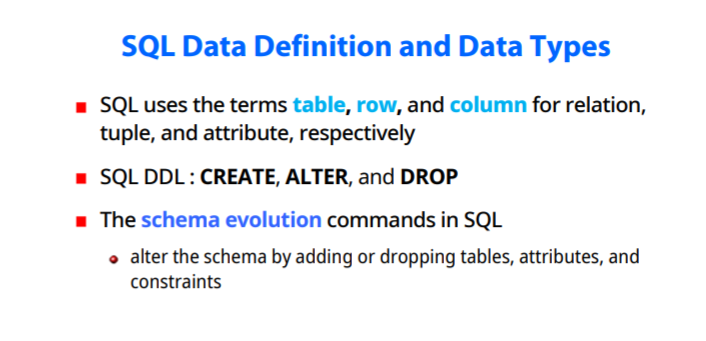 -INFORMATION_SCHEMA : catalog는 항상 특별한 형태의 Schema를 갖고있다. (Schema들의 정보를 담고 있는 meta--data를 담고 있는 Schema를 가짐)