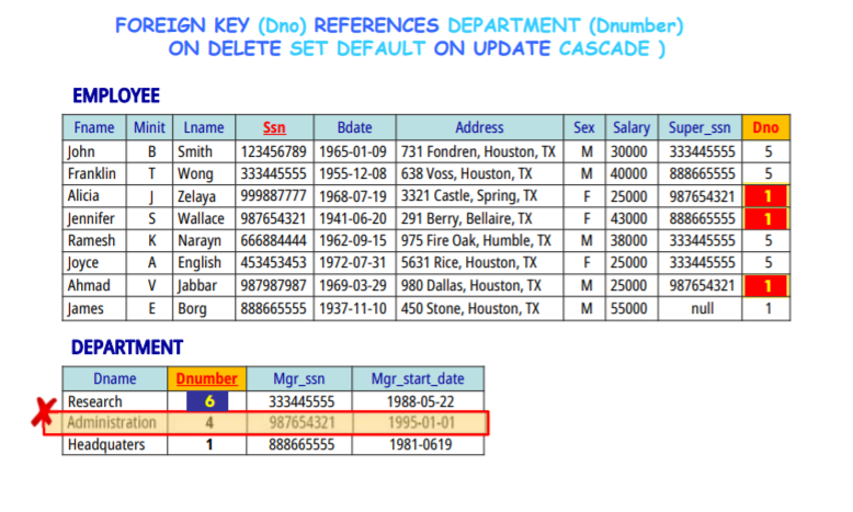 C.D 의 Mgr_ssn 에 DEFAULT절을 추가해라