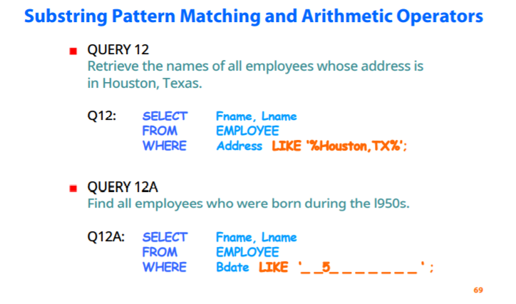 SQL 질의어에서 패턴매칭 표현, 산술연산 , 결과 정렬