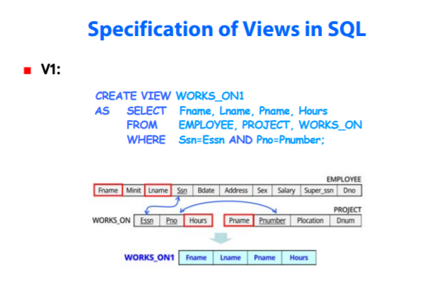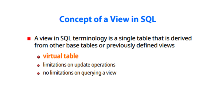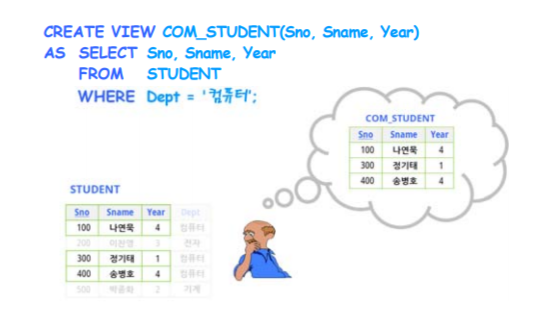 데이터가 저장된 base tables 또는 정의된 또다른 view로 부터 유도된 것을 View라고 한다