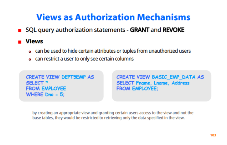 권한없는 유저에게 특정 튜플인 어트리뷰트에 대한 정보를 숨길 수 있다