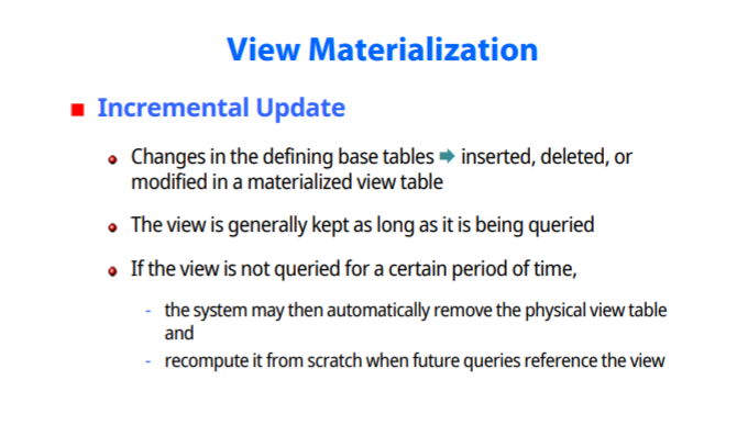 -base table이 수정되면 일시적 뷰도 수정해준다